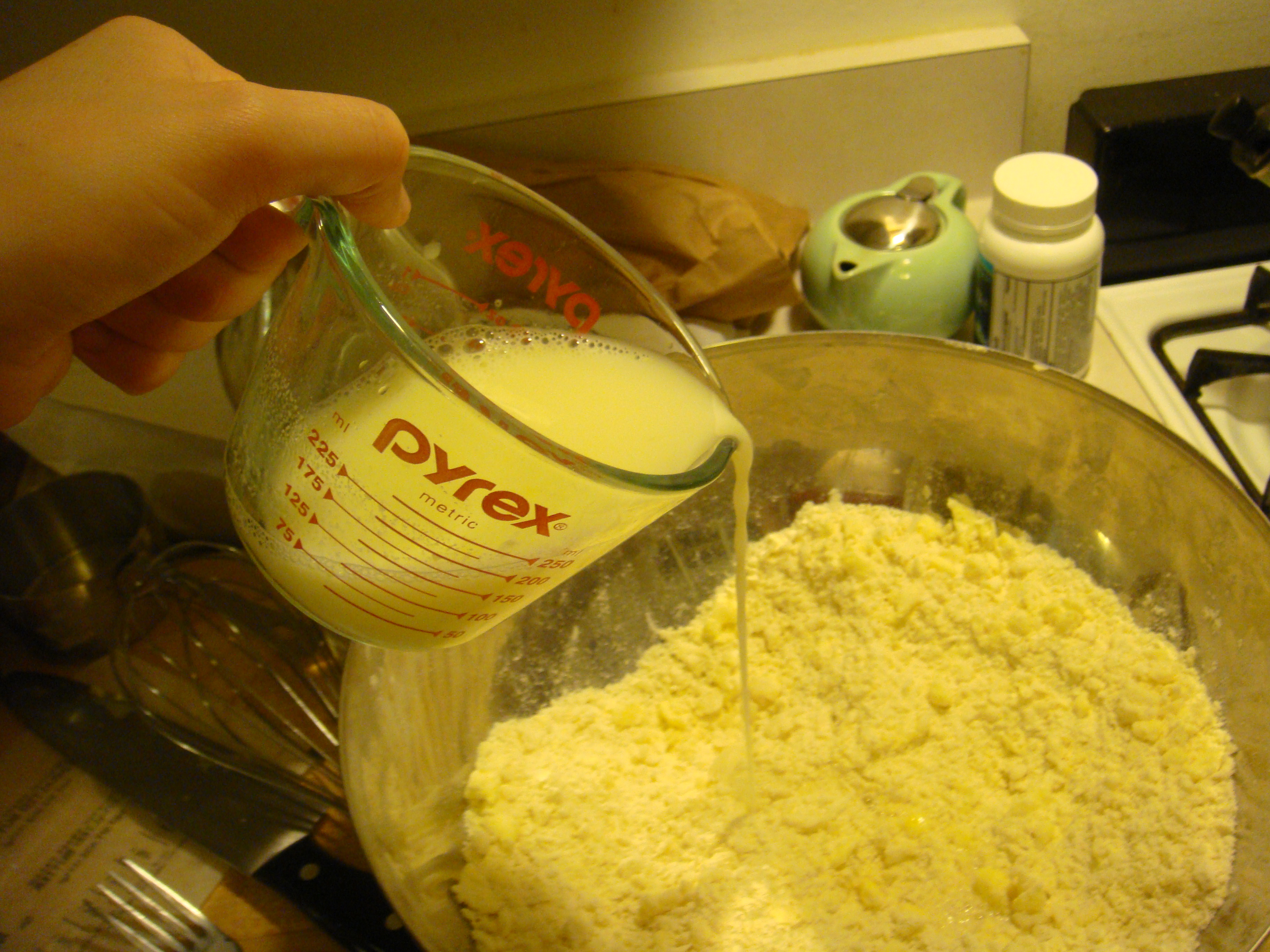 Drizzle this over the flour mixture.